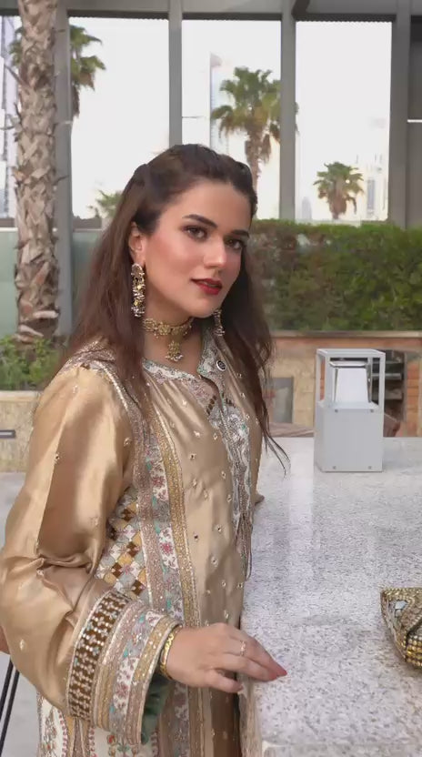 Grace meets luxury in our 2-piece kaftan style zardozi & mirror work long shirt, crafted on pure silk for an effortlessly regal look. Paired with a separate dupatta, this timeless outfit is perfect for festive elegance.